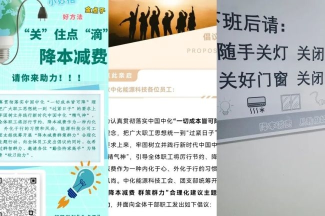 为认真贯彻落实中国中化“一切成本皆可降”理念,将广大职工思想统一到“过紧日子”的要求上来;将要求贯穿于今年各项工作、各个方面,按照上级单位要求,中化能源科技工会、团支部通过各种形式宣传教育,引导职工积极投入到“降本减费 群策群力”行动中去,扎实组织推进相关降本举措落实。