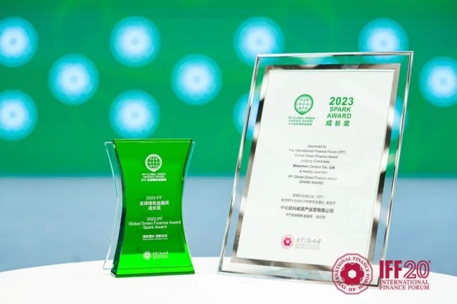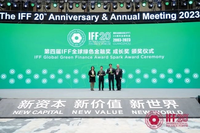 “IFF全球绿色金融奖”是国际金融论坛(IFF)于2020年发起设立的,评审委员会由中外25位具有全球影响力和权威性的重要财经领袖和金融界、环境界精英组成,旨在对全球绿色金融领域尤其是气候投融资和生物多样性金融领域做出突出成绩的机构以及创新性解决方案进行表彰和奖励,以此促进全球气候治理和可持续发展进程。该奖项的设立受到联合国、世界银行、国际货币基金组织等多个国际组织的高度评价。